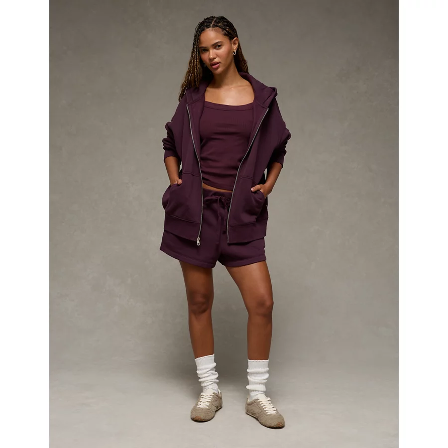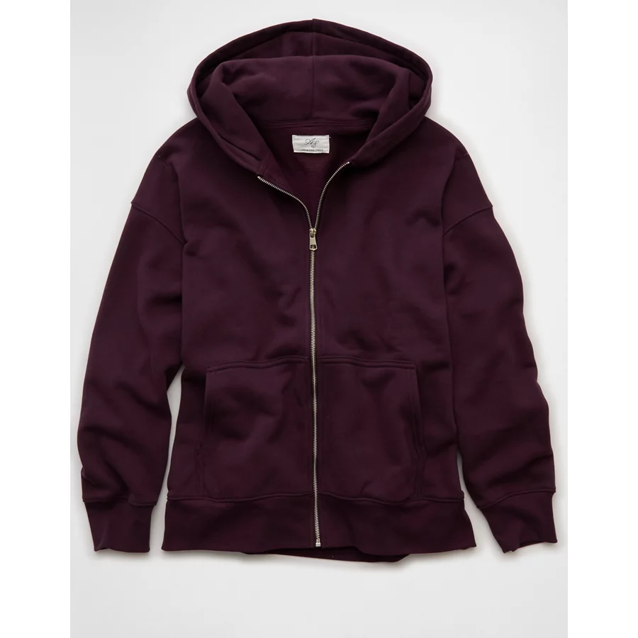 AE Everyday Luxe Oversized Zip-Up Hoodie - Chocolate