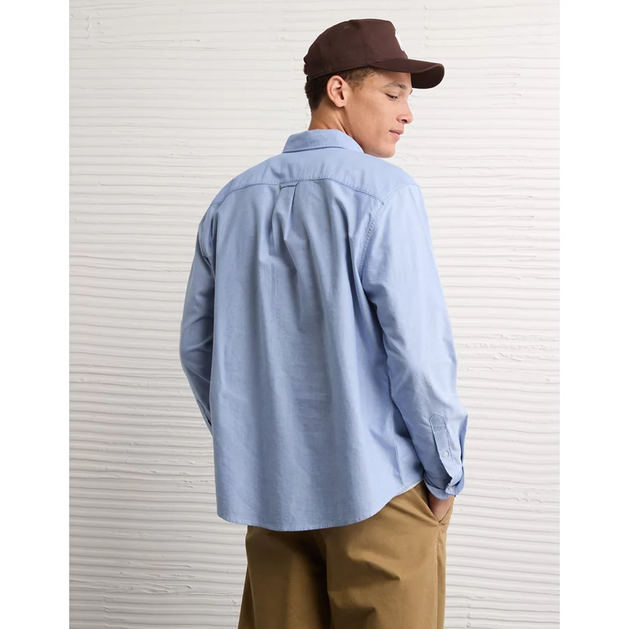 AE Everyday Oxford Striped Button-Up Shirt – Blue