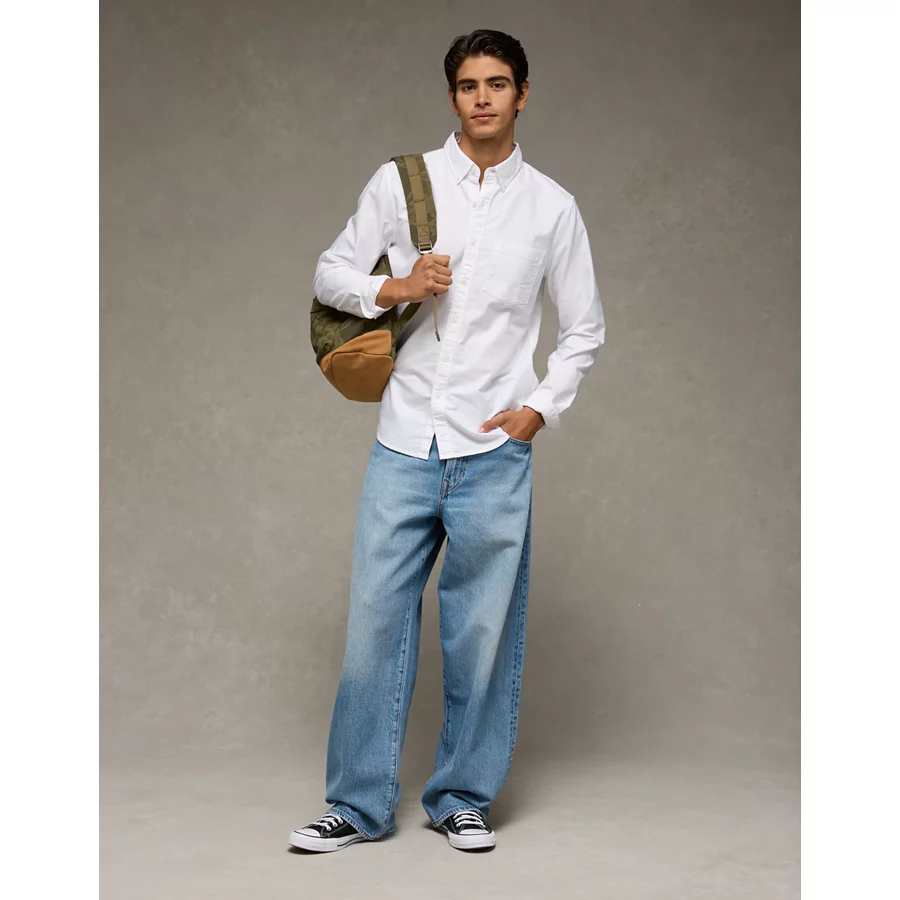 AE Everyday Relaxed Oxford Button-Up Shirt - Light Blue