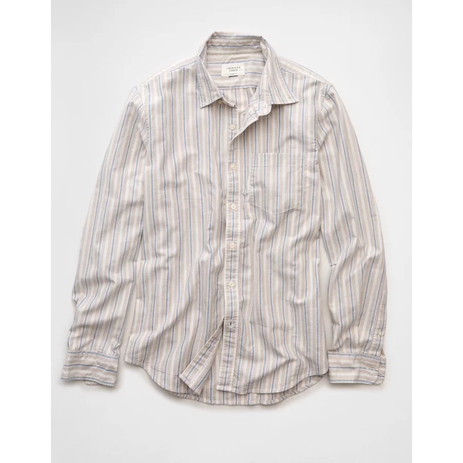 AE Everyday Slim Fit Oxford Striped Button-Up Shirt – Khaki