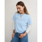 AE Ex-Boyfriend Logo Graphic T-Shirt - Indigo