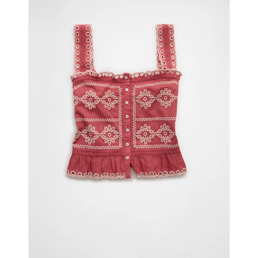 AE Eyelet Crop Top – Pink