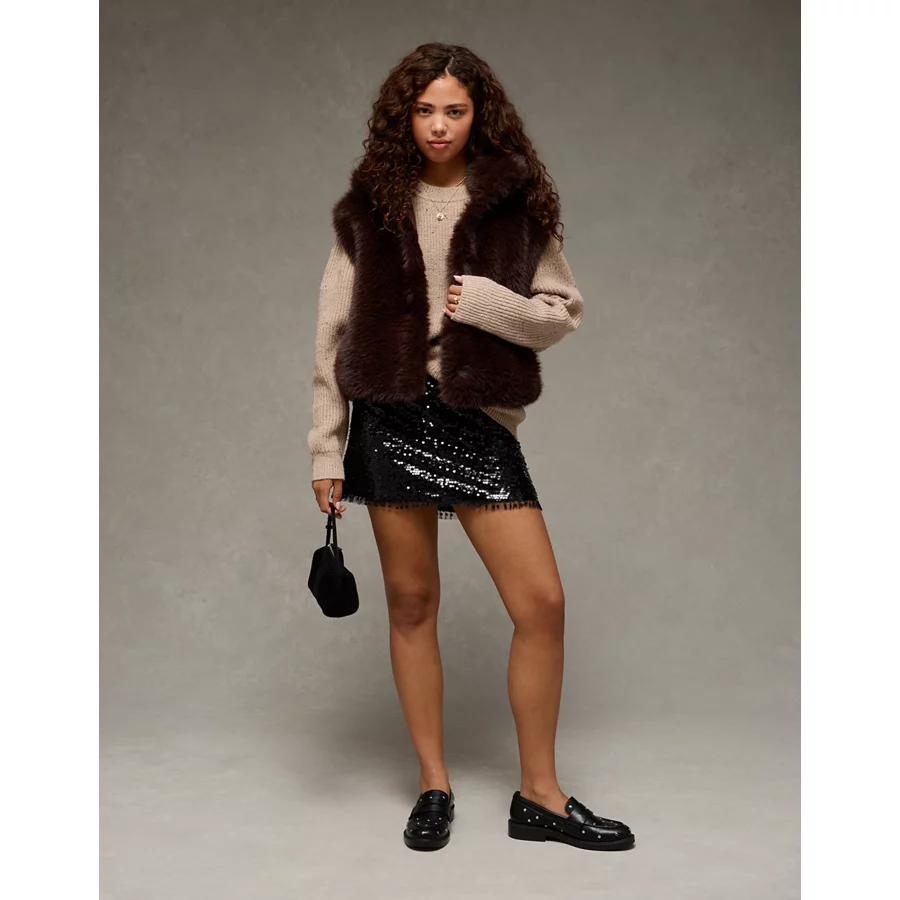 AE Faux Leather Cropped Bomber Jacket - Olive