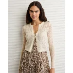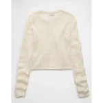 AE Fitted Crew Neck Cardigan – Cream