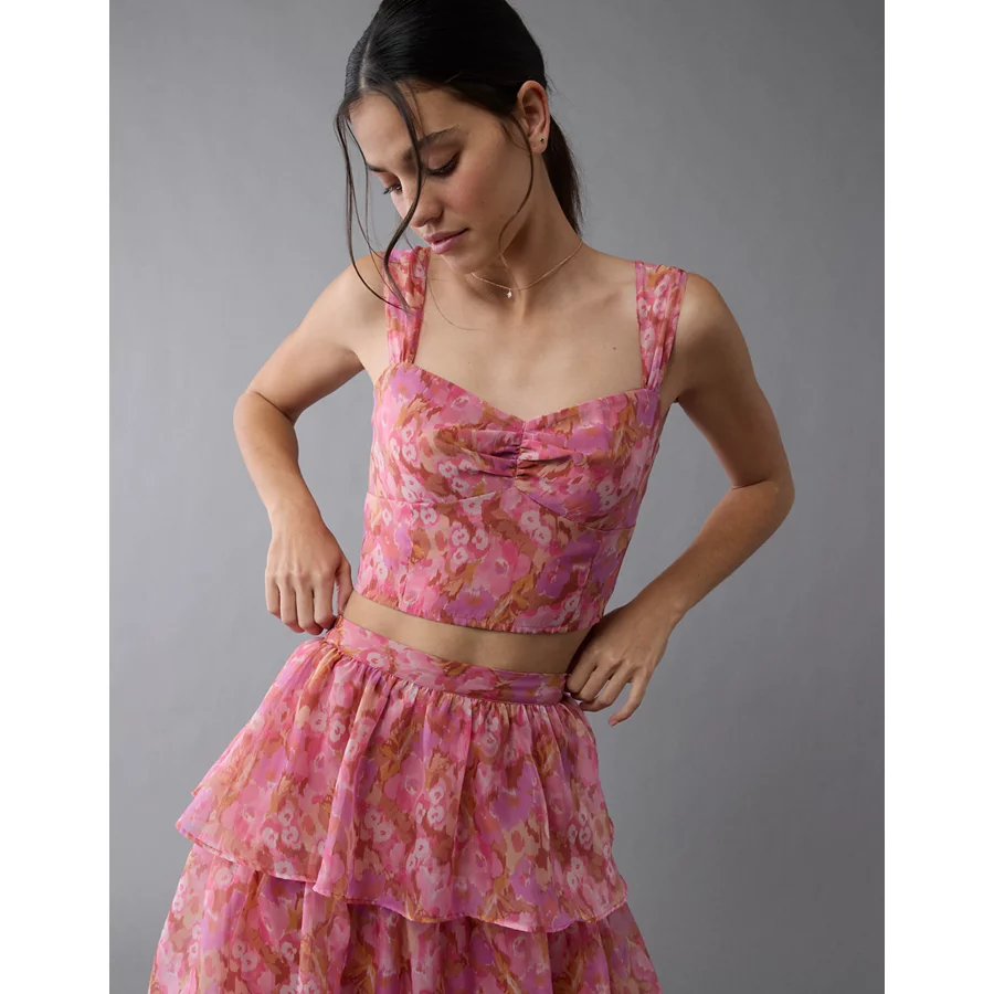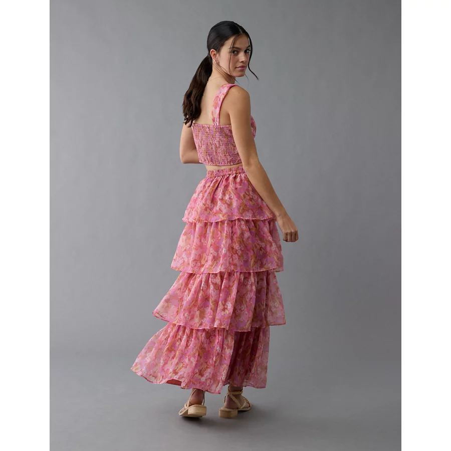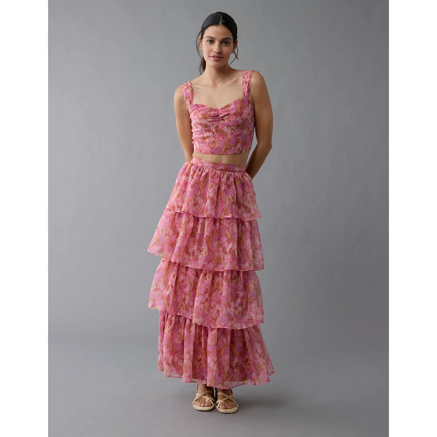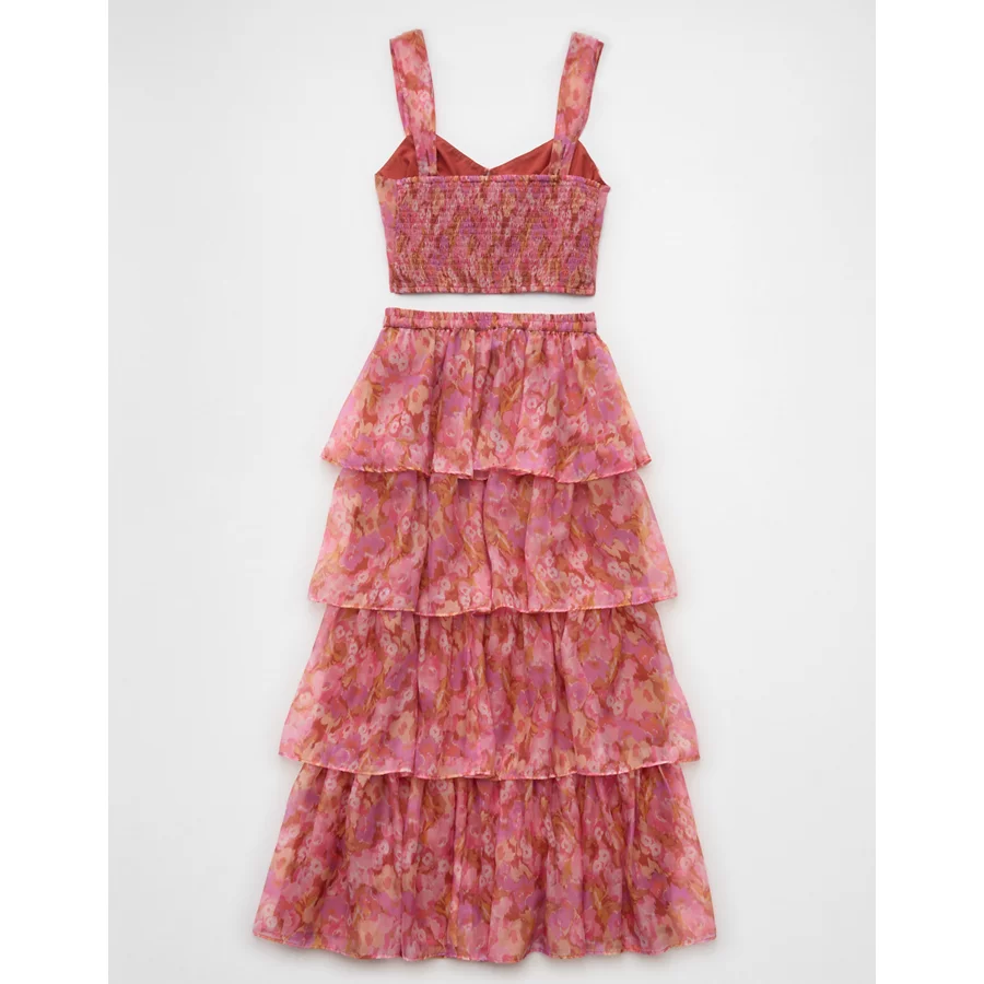 AE Floral Organza Maxi Skirt Set – Pink
