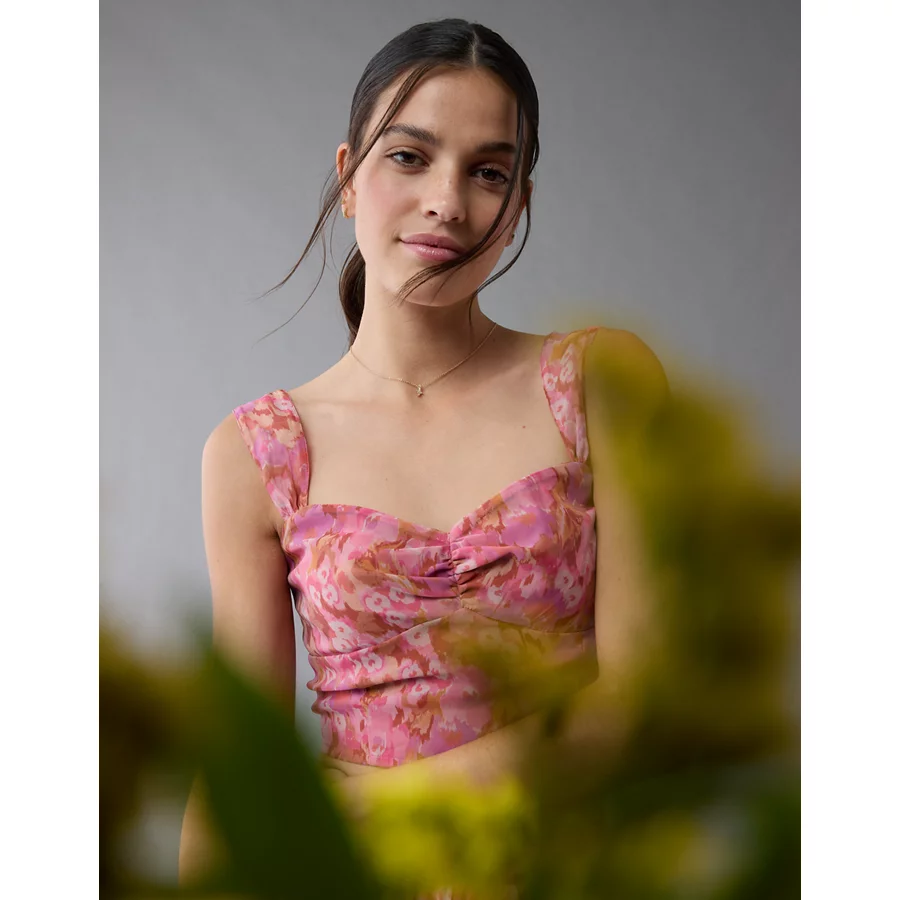 Strapless top with a cinched sweetheart neck