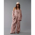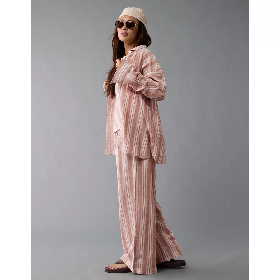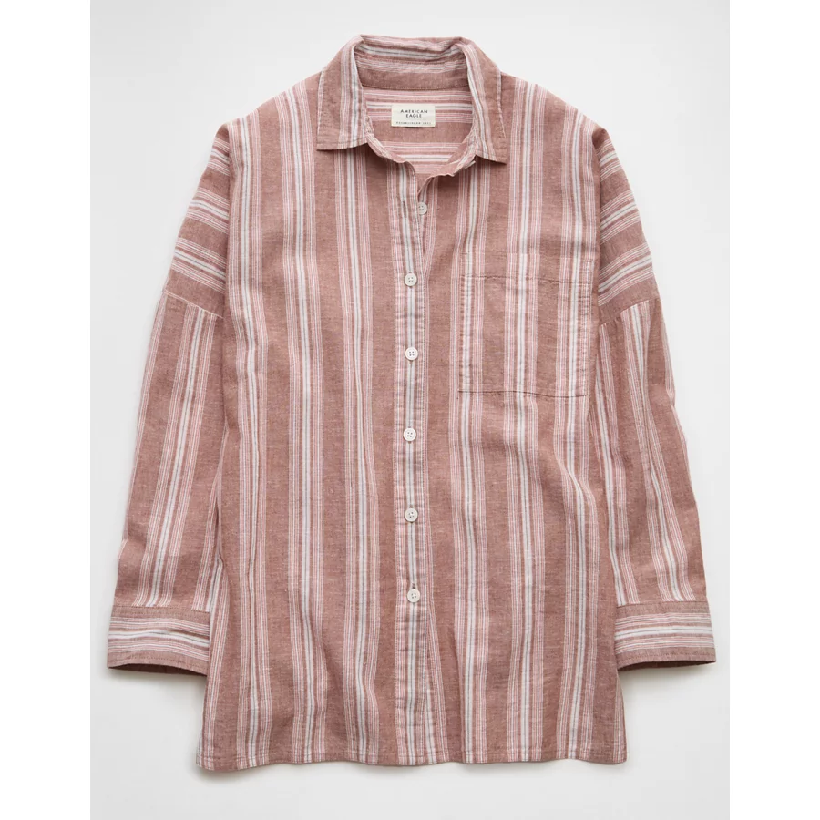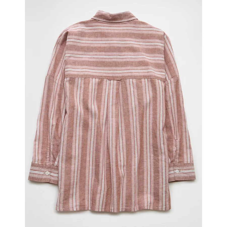 AE Go Big Linen-Blend Oversized Striped Shirt – Pink