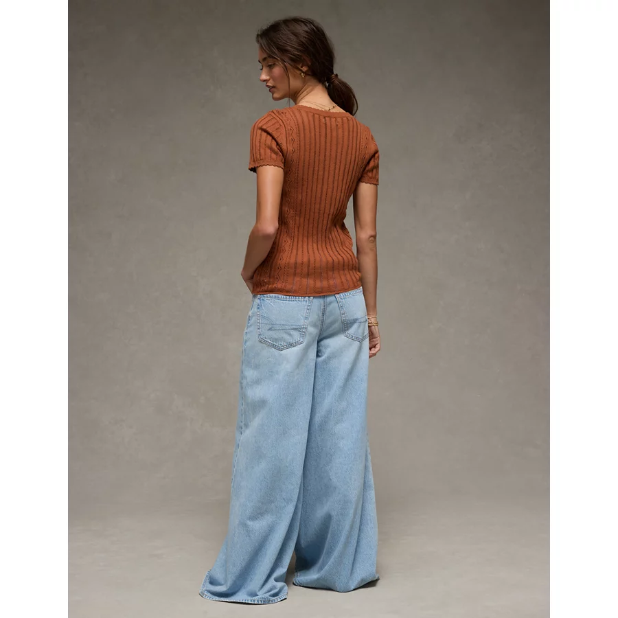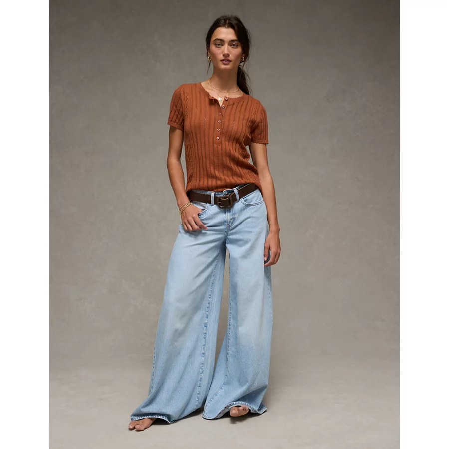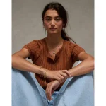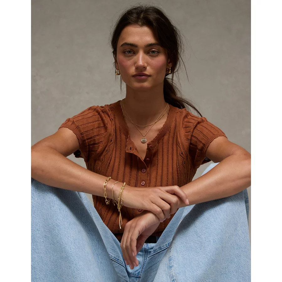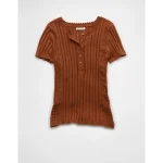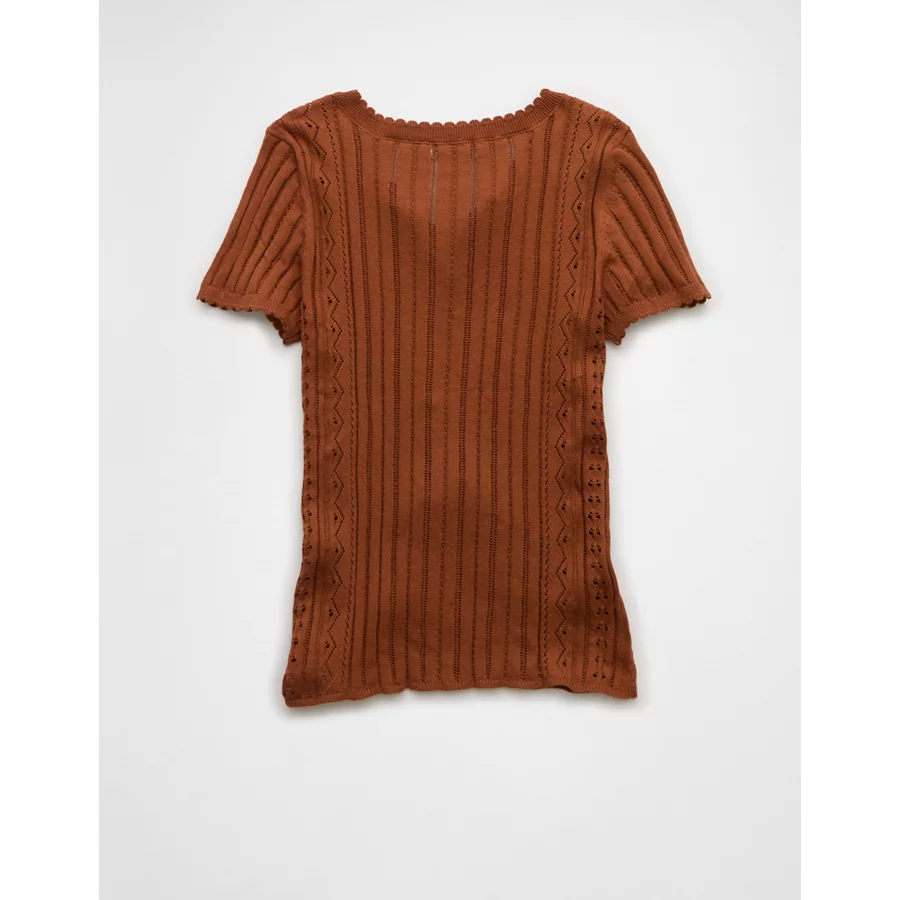 AE Henley Pointelle Sweater T-Shirt – Brown