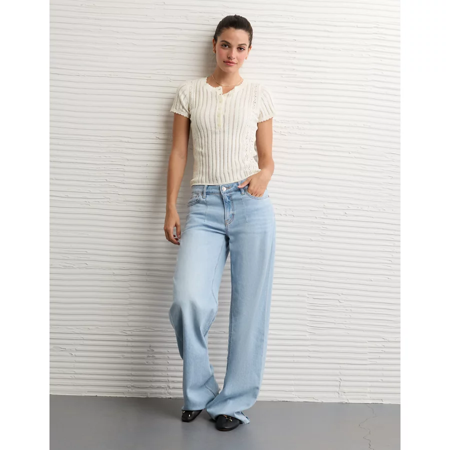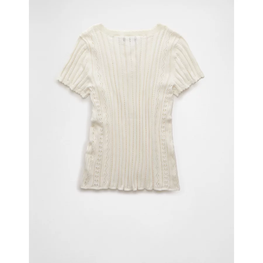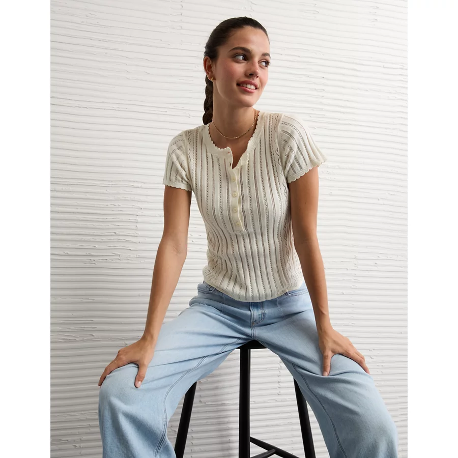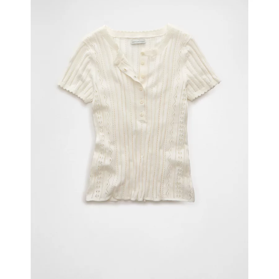 AE Henley Pointelle Sweater T-Shirt – Cream