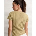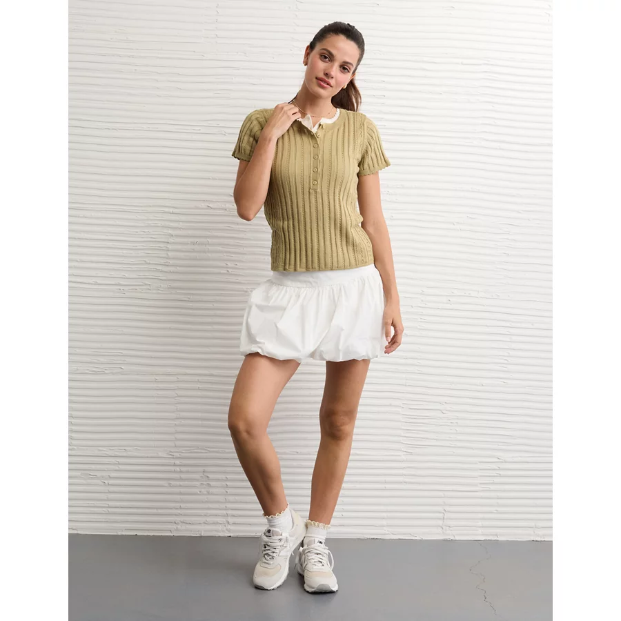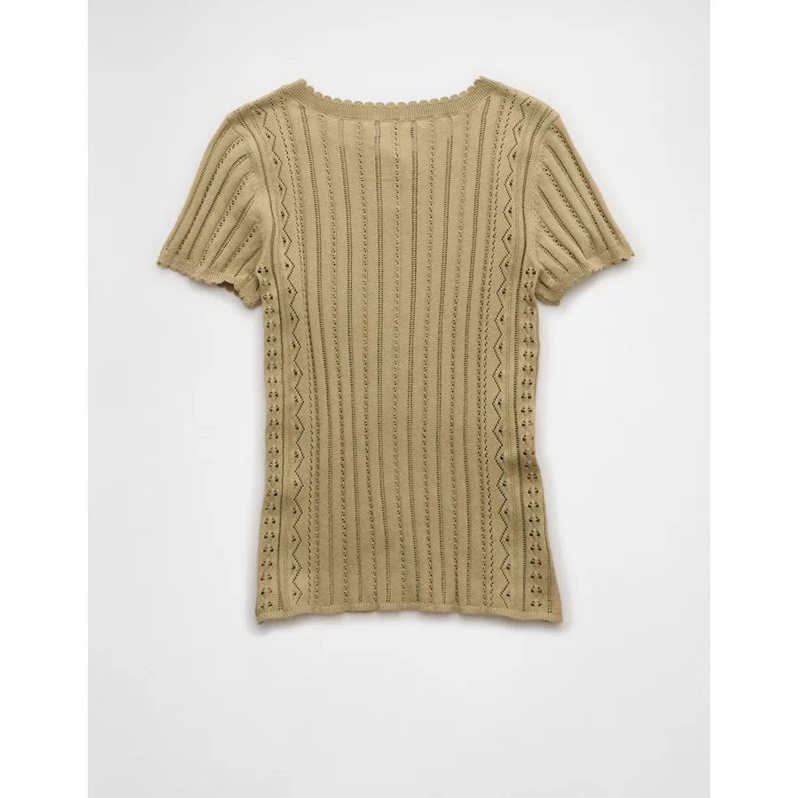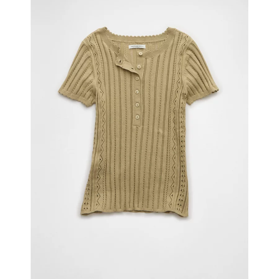 AE Henley Pointelle Sweater T-Shirt - Brown