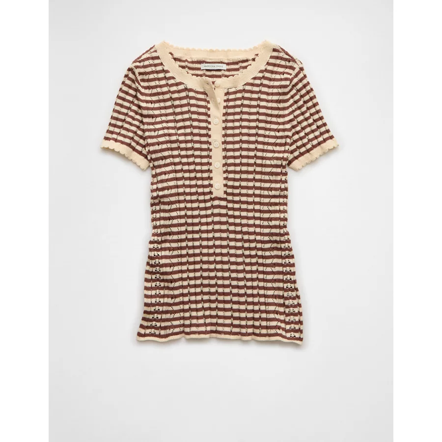 AE Henley Pointelle Sweater T-Shirt - Brown