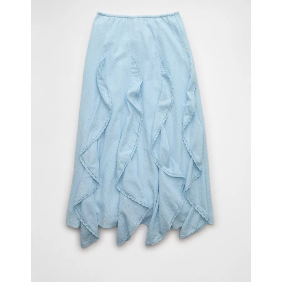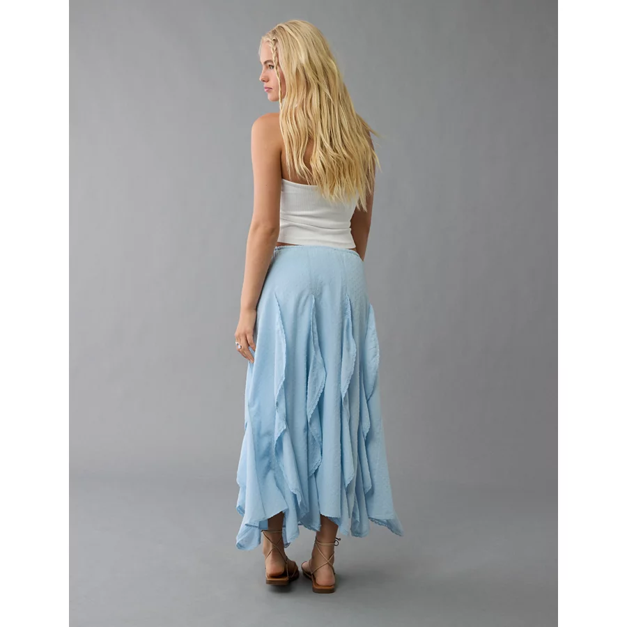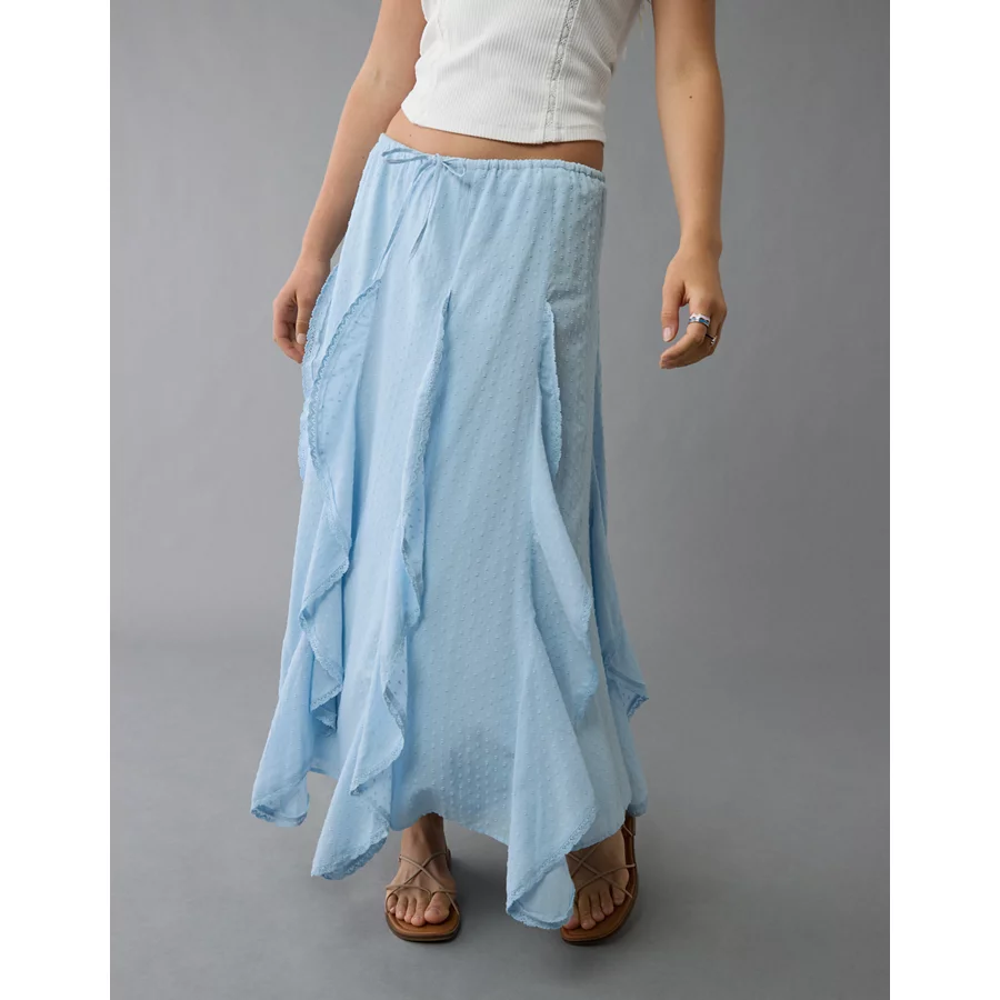 AE High-Waisted Cascade Ruffle Maxi Skirt – Light Blue