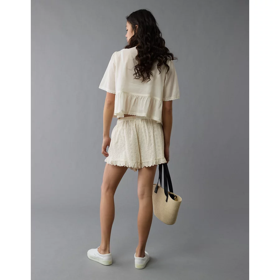 AE High-Waisted Eyelet Ruffle Short – Cream