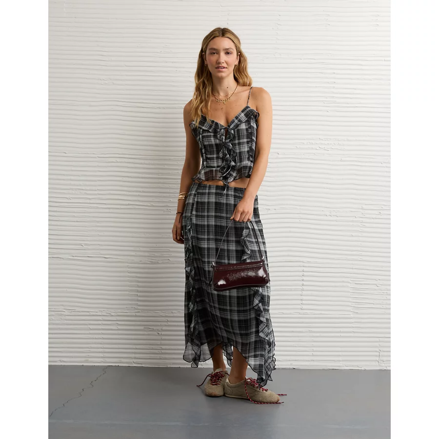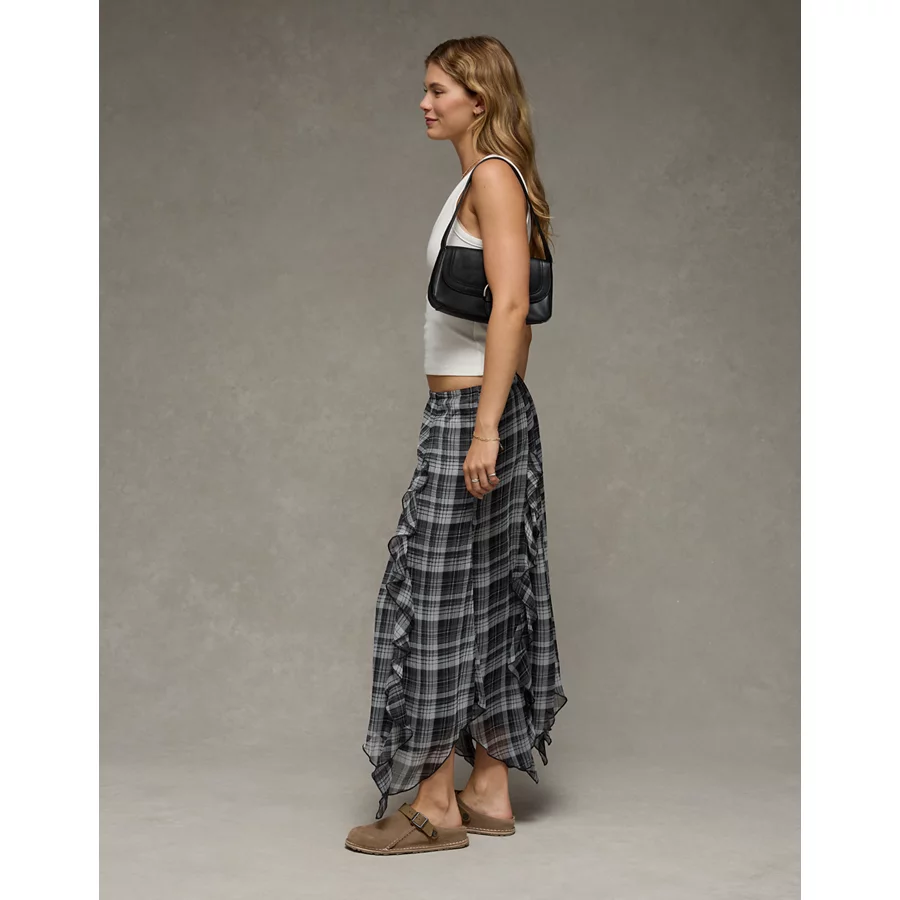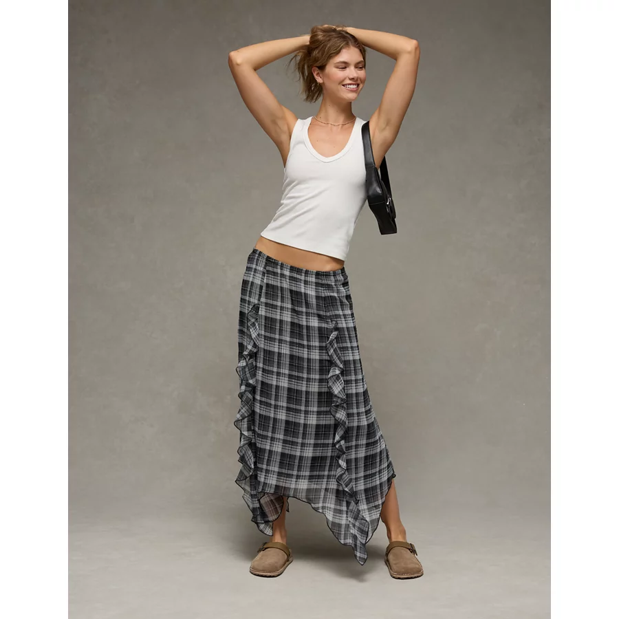 AE High-Waisted Plaid Maxi Skirt – Multi