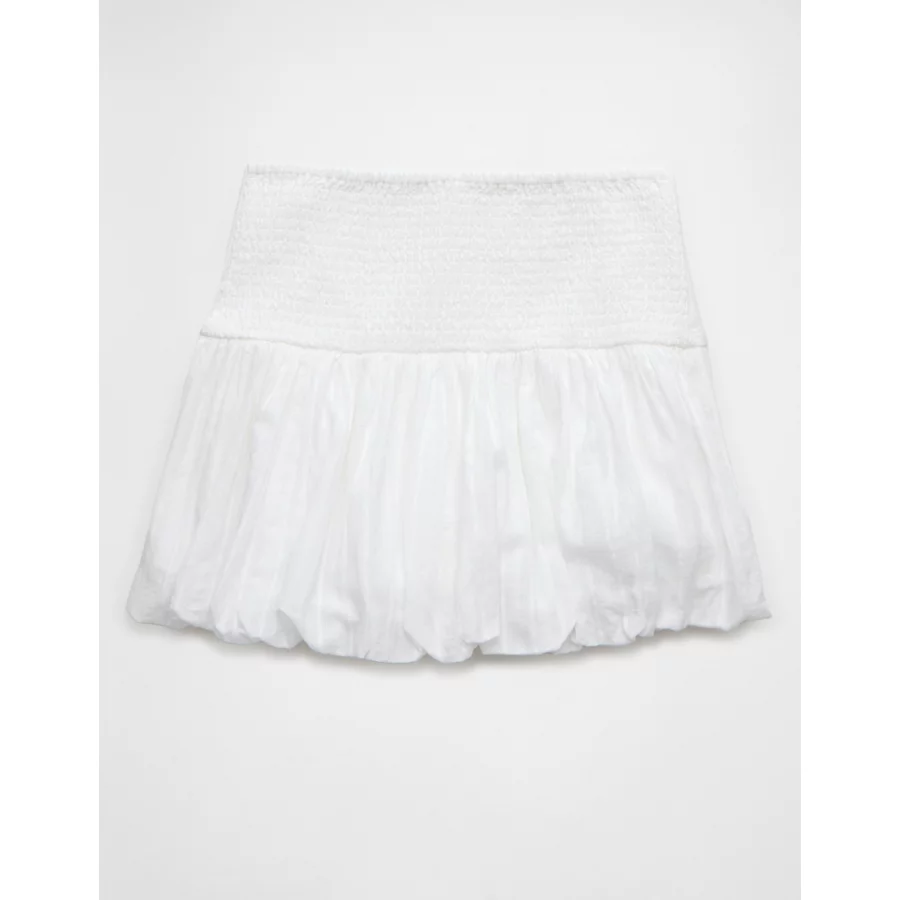 AE High-Waisted Smocked Bubble Skirt – White