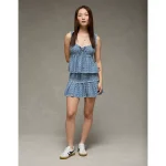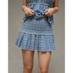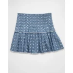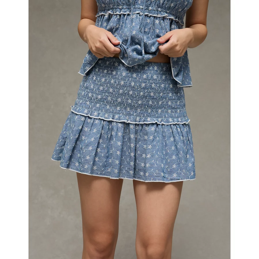 AE High-Waisted Smocked Mini Skirt – Light Blue
