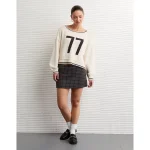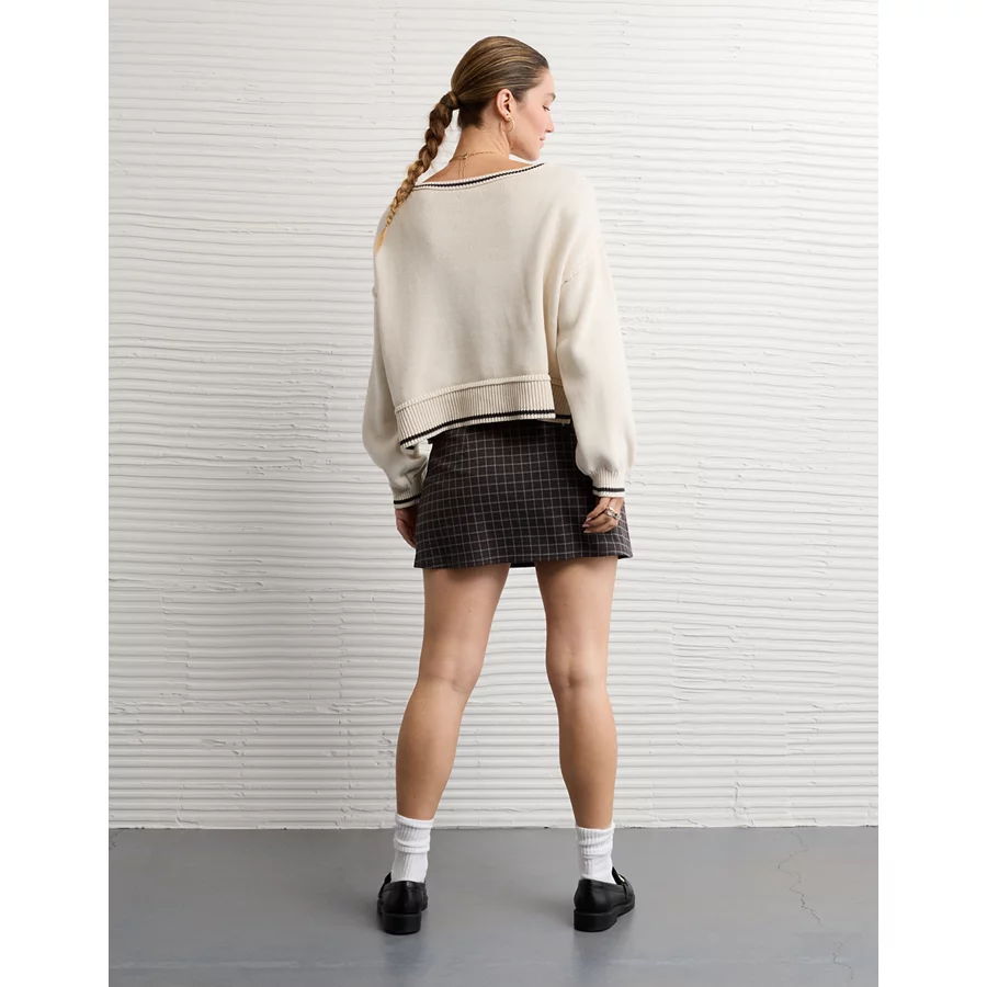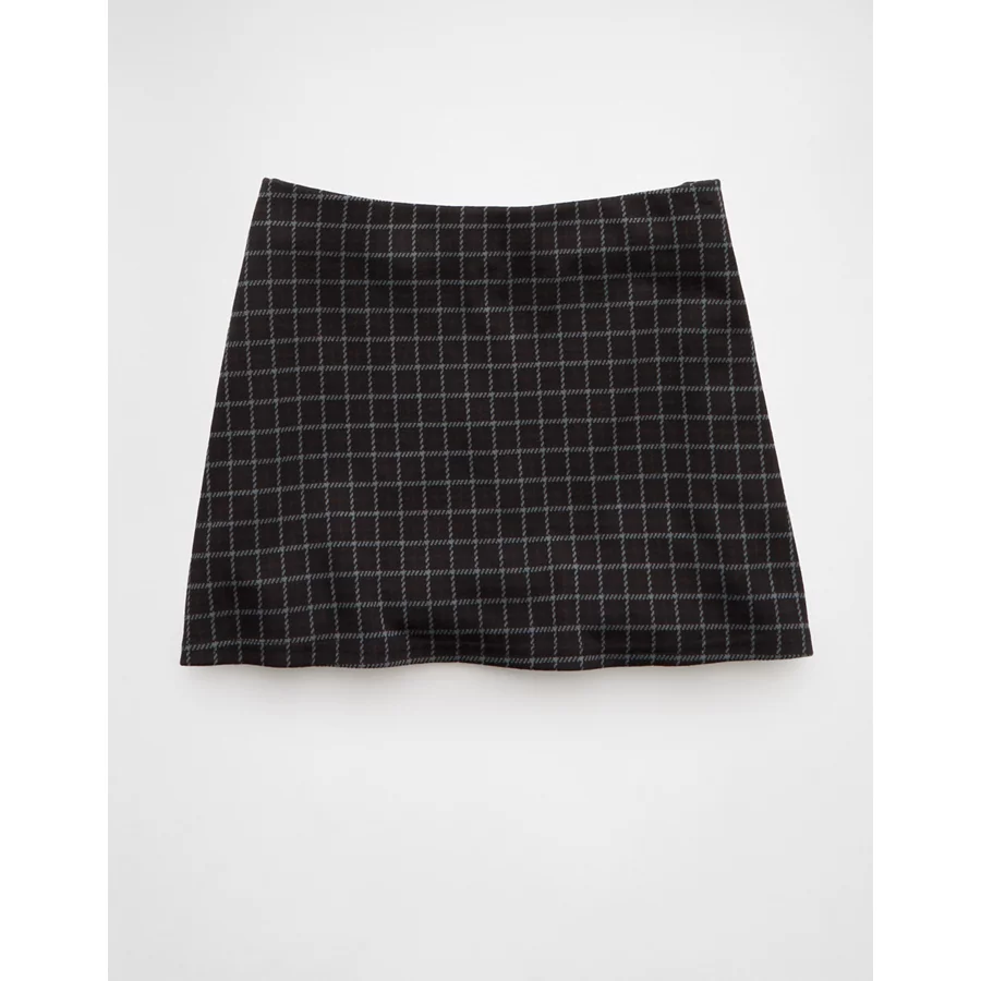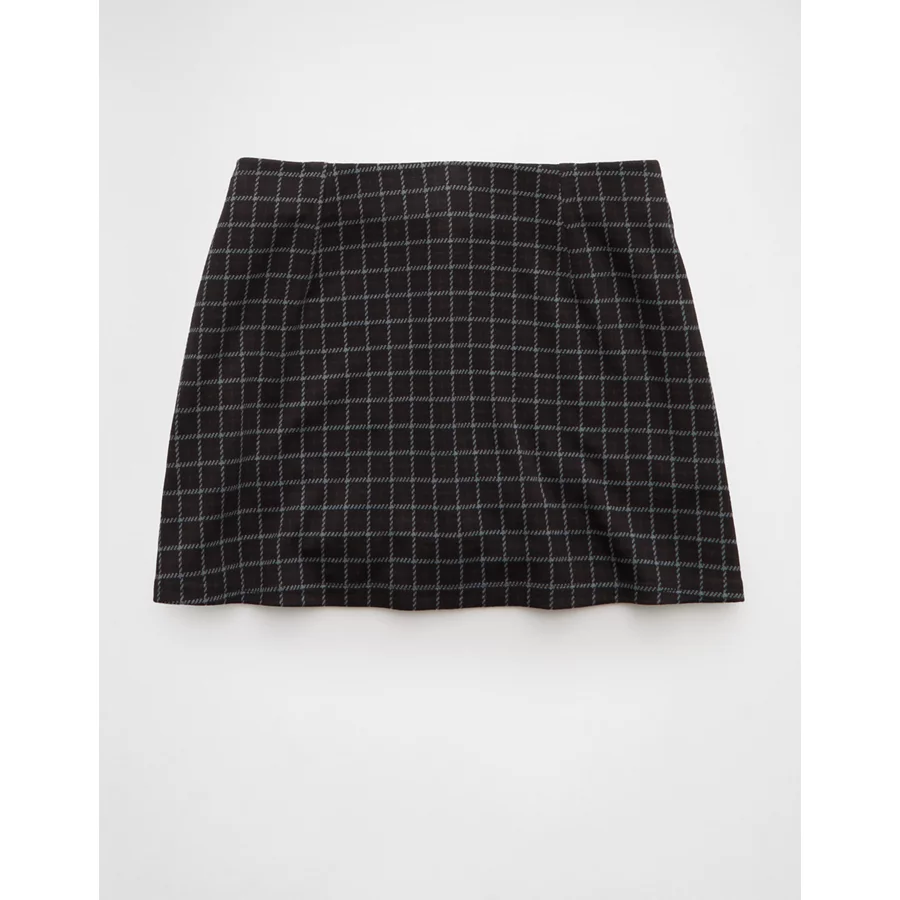 AE It Knit Low-Rise Pleated Plaid Skort - Grey