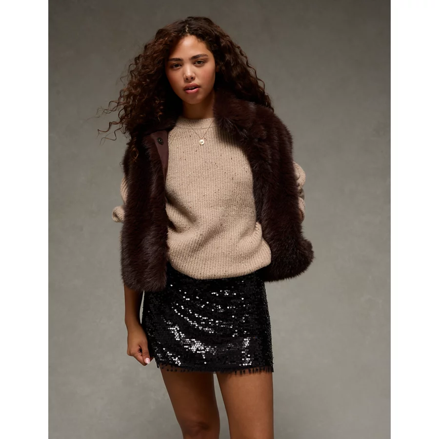 AE It Knit Sequined Mini Slit Skort – Silver Shadow