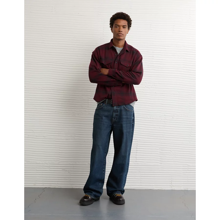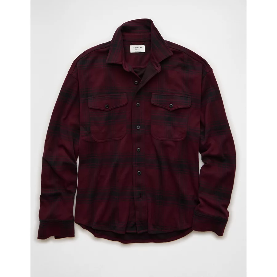 AE Knit Button-Up Shirt – Burgundy