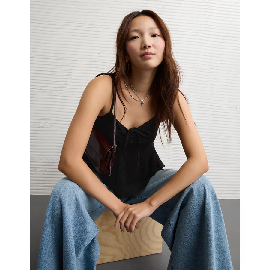 AE Lace Handkerchief Hem Tank – True Black