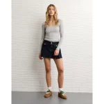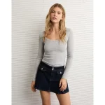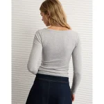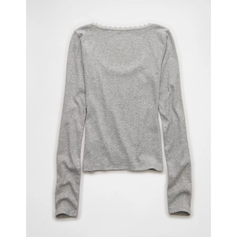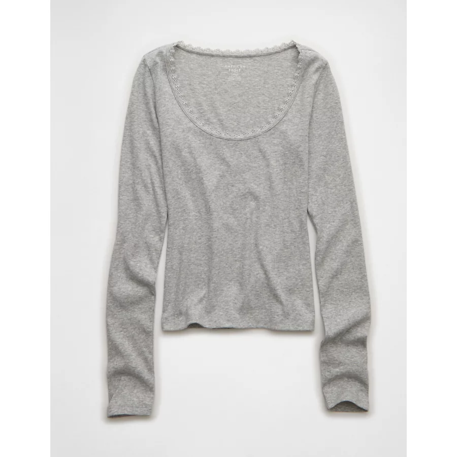 AE Lace-Trim Long Sleeve T-Shirt – Medium Heather Gray