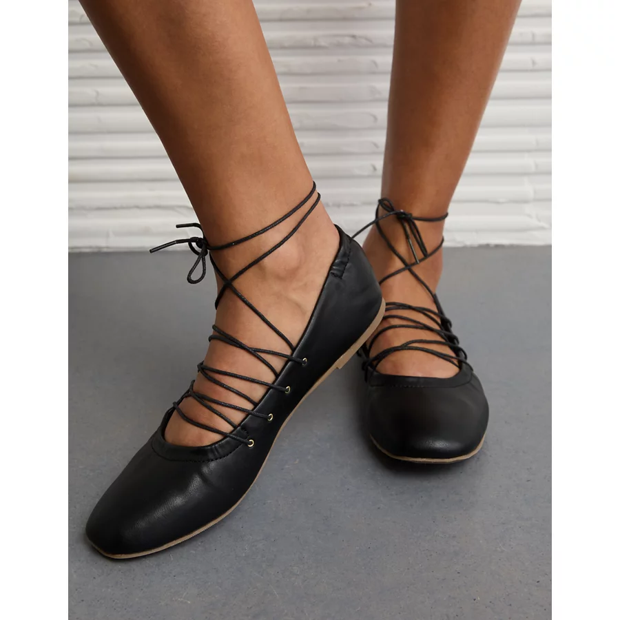 AE Lace-Up Ballet Flat – Black