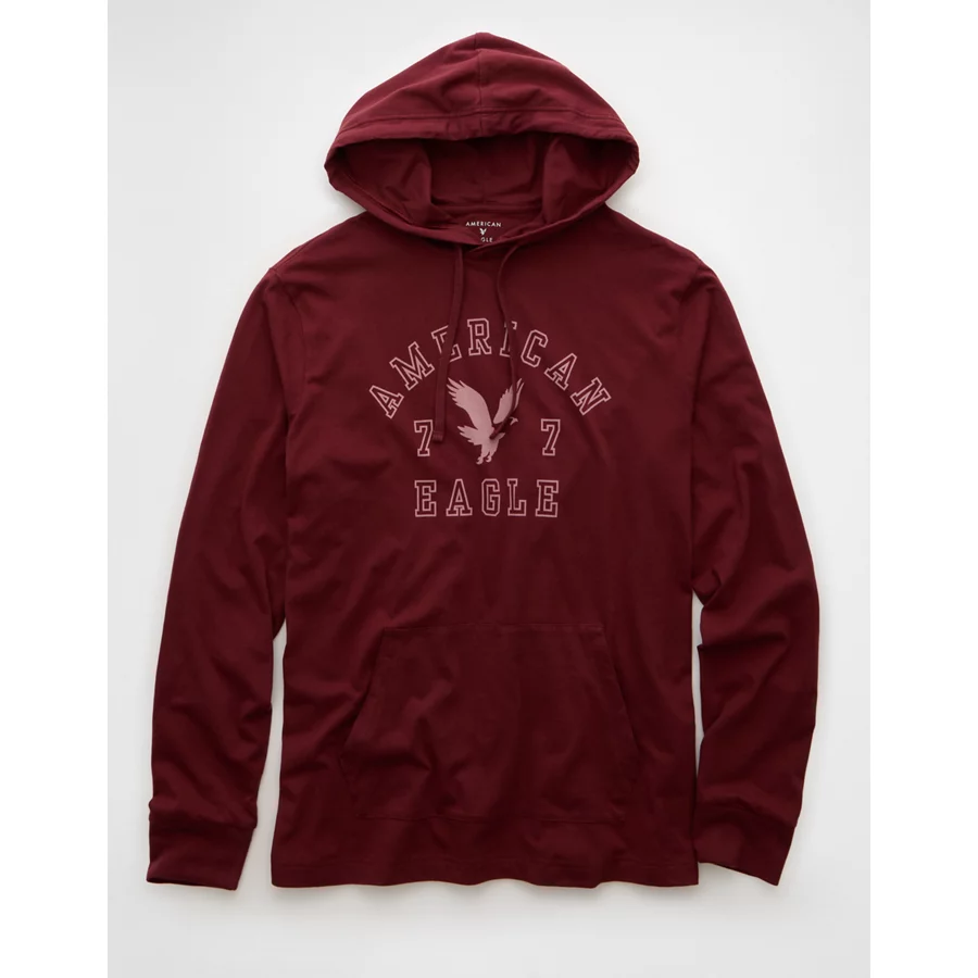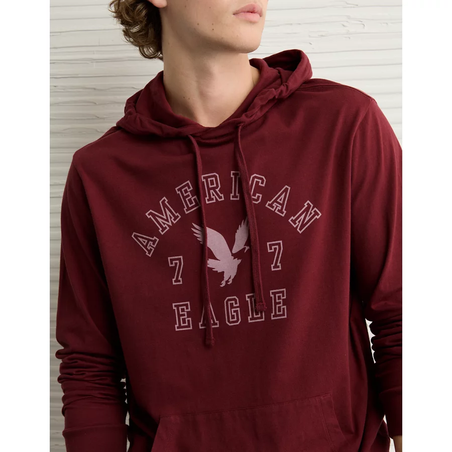 AE Lightweight Icon Logo Graphic Hoodie T-Shirt – Wine