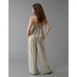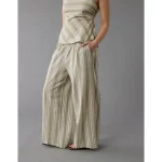 AE Linen-Blend High-Waisted Wide-Leg Pant - Pink