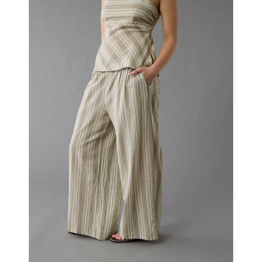 AE Linen-Blend High-Waisted Wide-Leg Pant – Olive