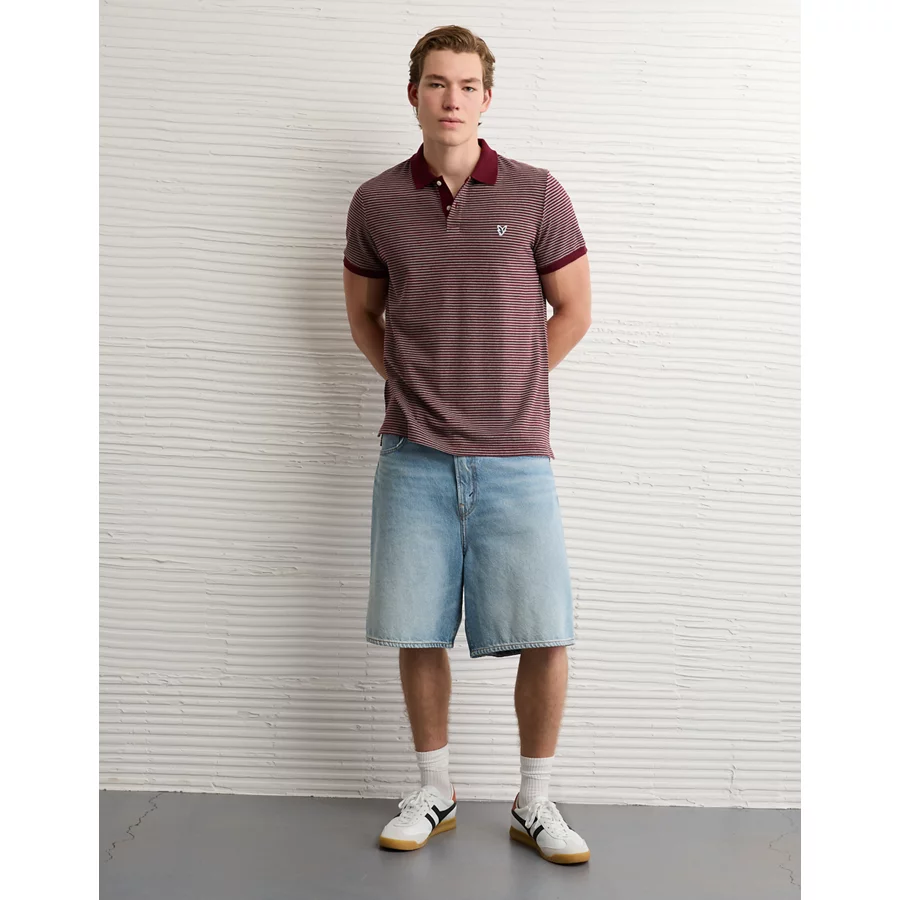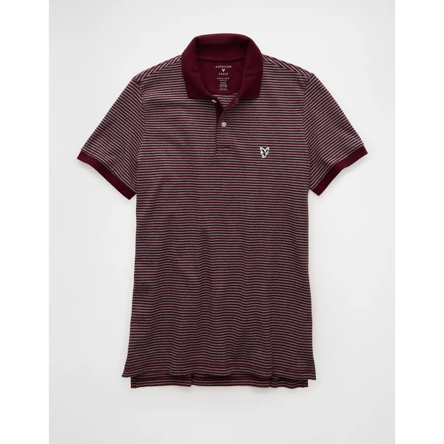 AE Lived-In Slim Fit Pique Polo Shirt – Burgundy