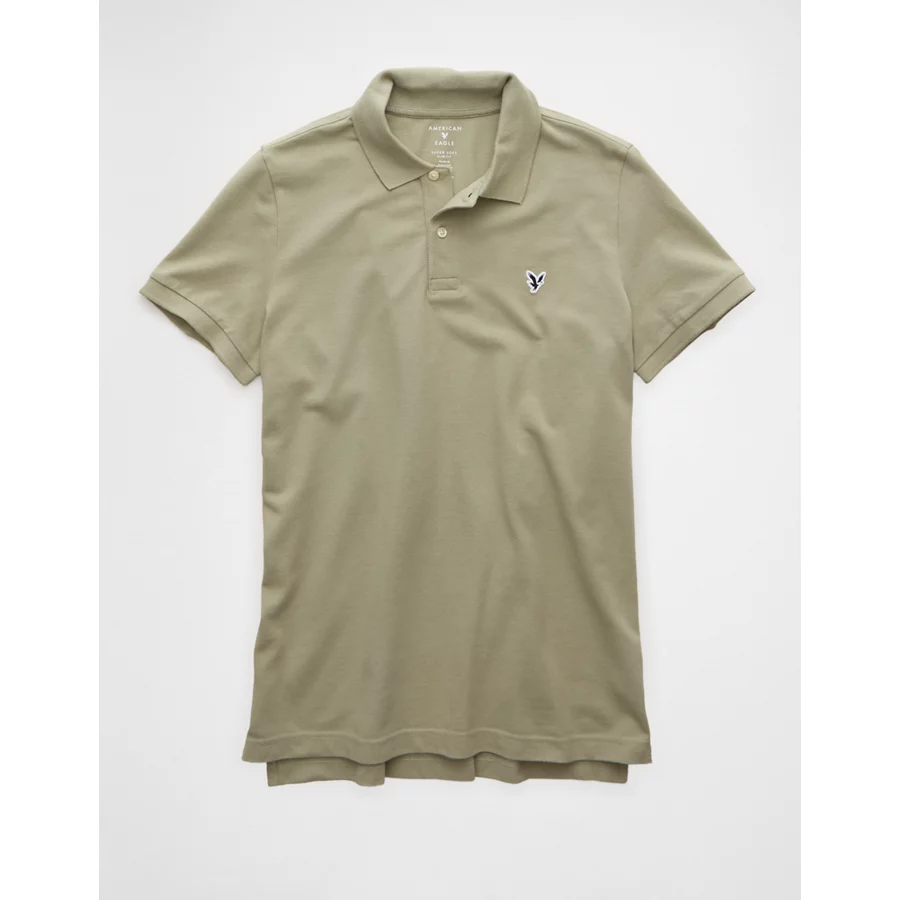 AE Lived-In Slim Fit Pique Polo Shirt - Khaki