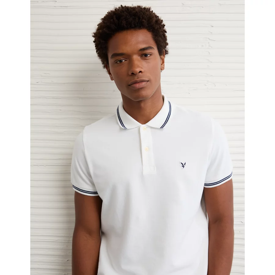 AE Lived-In Slim Fit Pique Polo Shirt – White