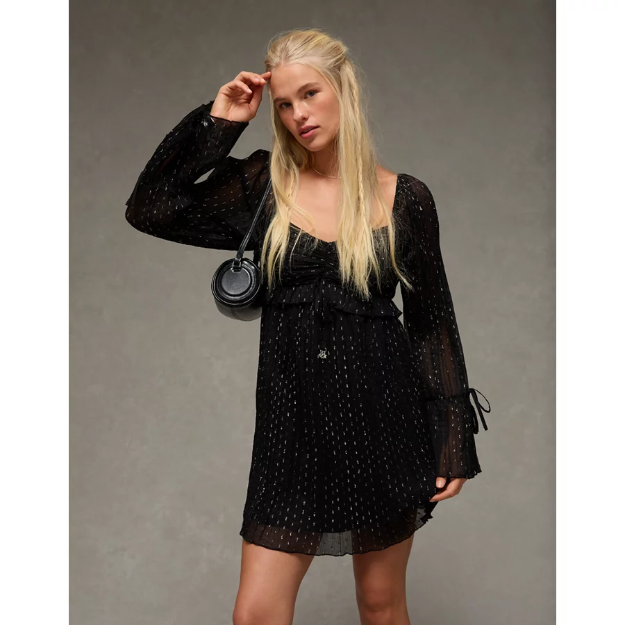 AE Long Sleeve Babydoll Mini Dress - Purple