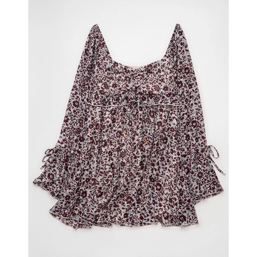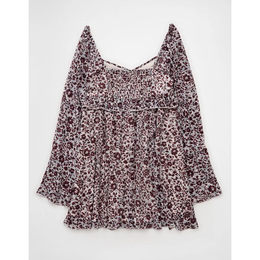 AE Long Sleeve Babydoll Mini Dress - Cream