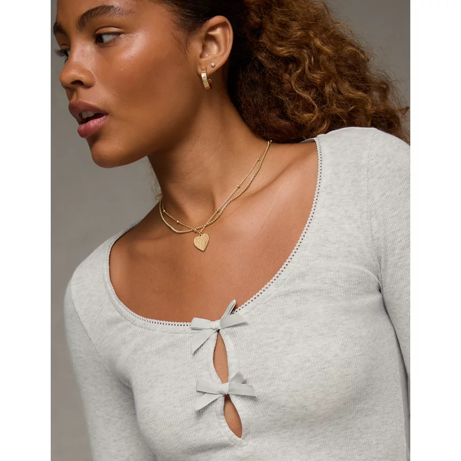 AE Long Sleeve Bow T-Shirt – Grey