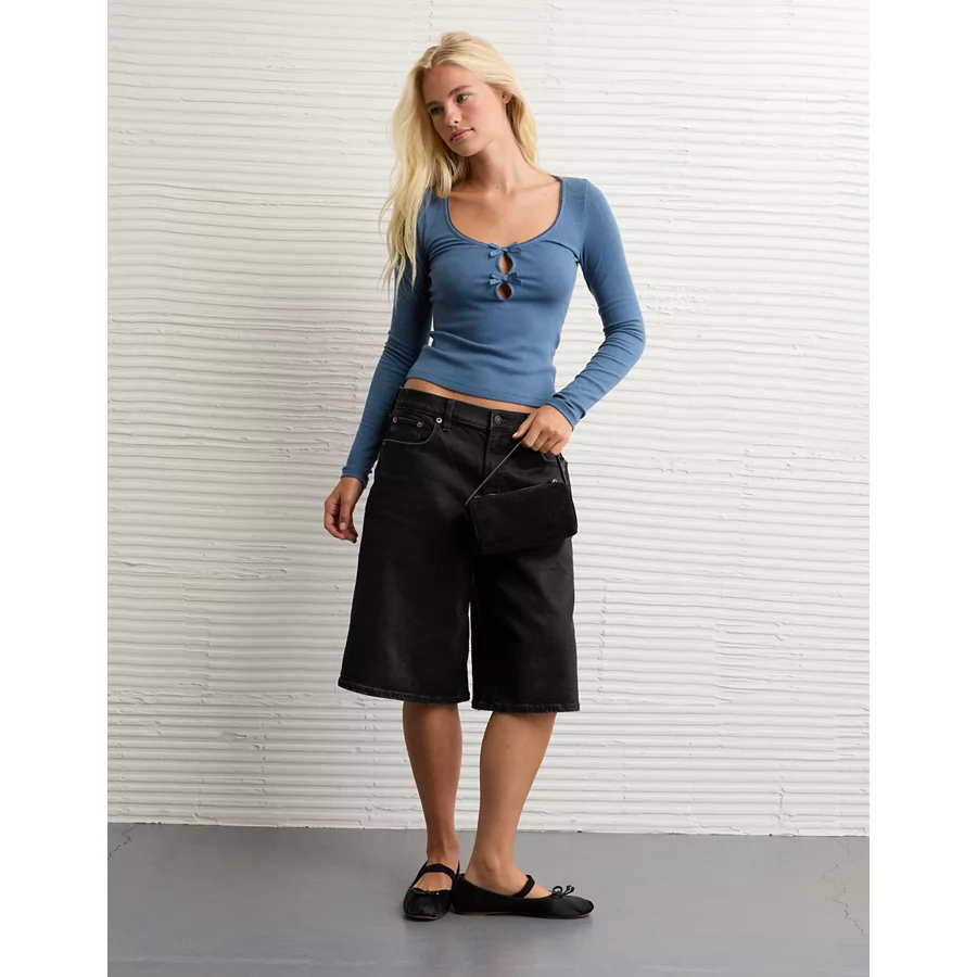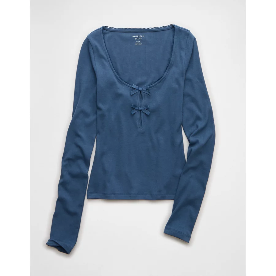 AE Long Sleeve Bow T-Shirt – Navy