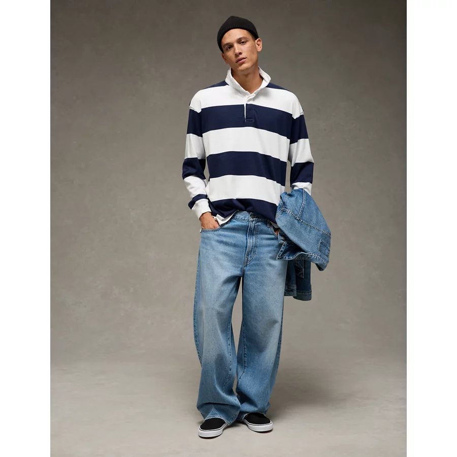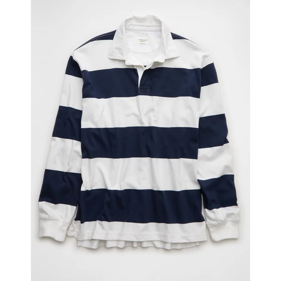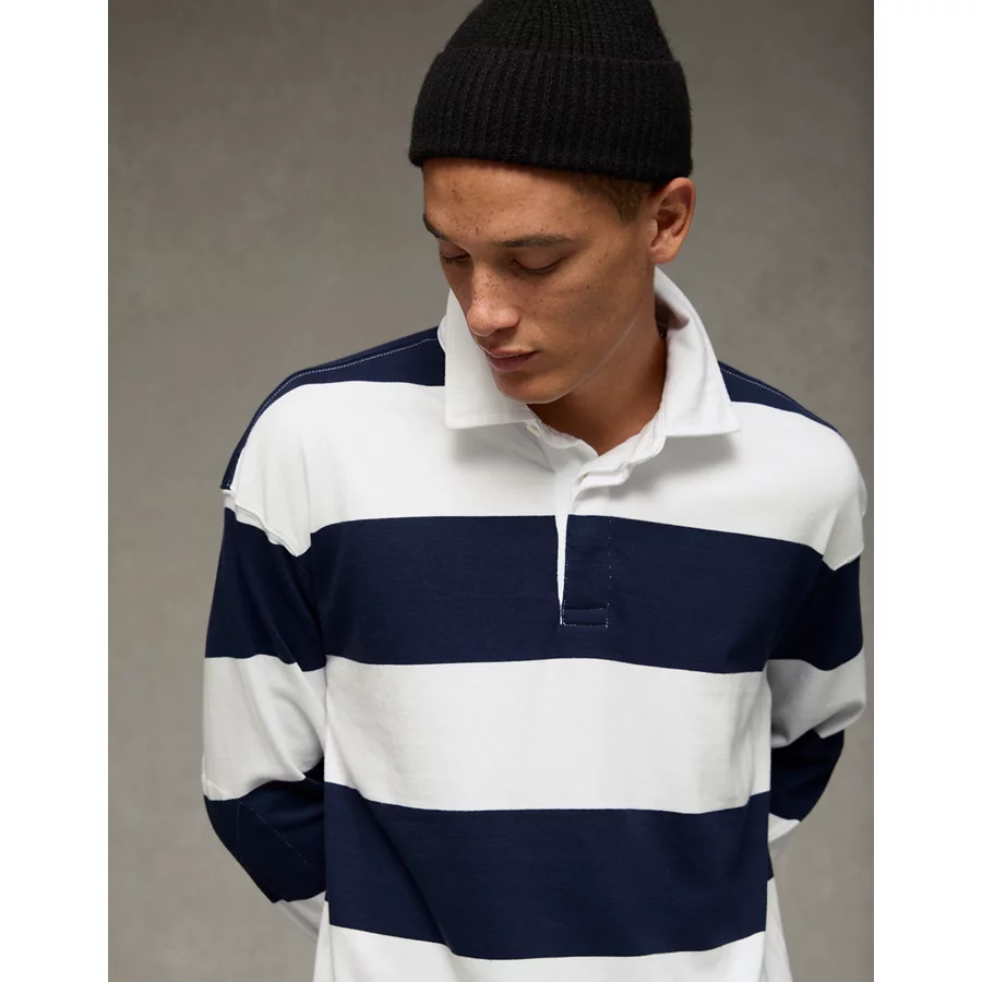AE Long Sleeve Boxy Rugby Polo Shirt – Dark Blue