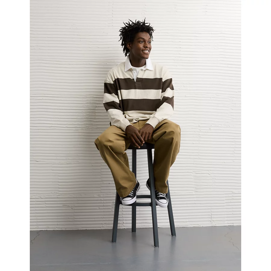 AE Long Sleeve Boxy Rugby Polo Shirt – Soft Oat