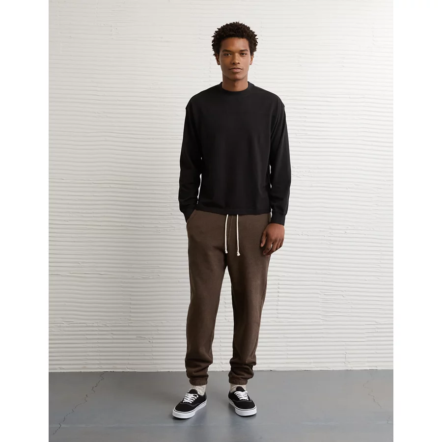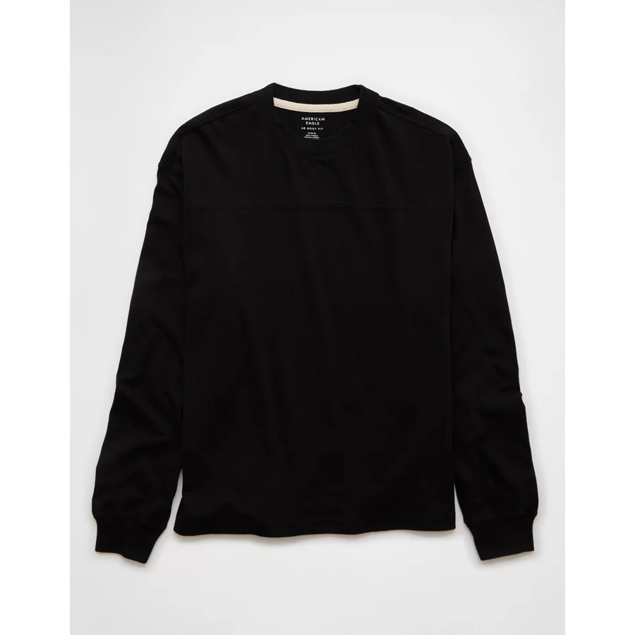 AE Long-Sleeve Boxy Sueded Jersey T-Shirt – Black