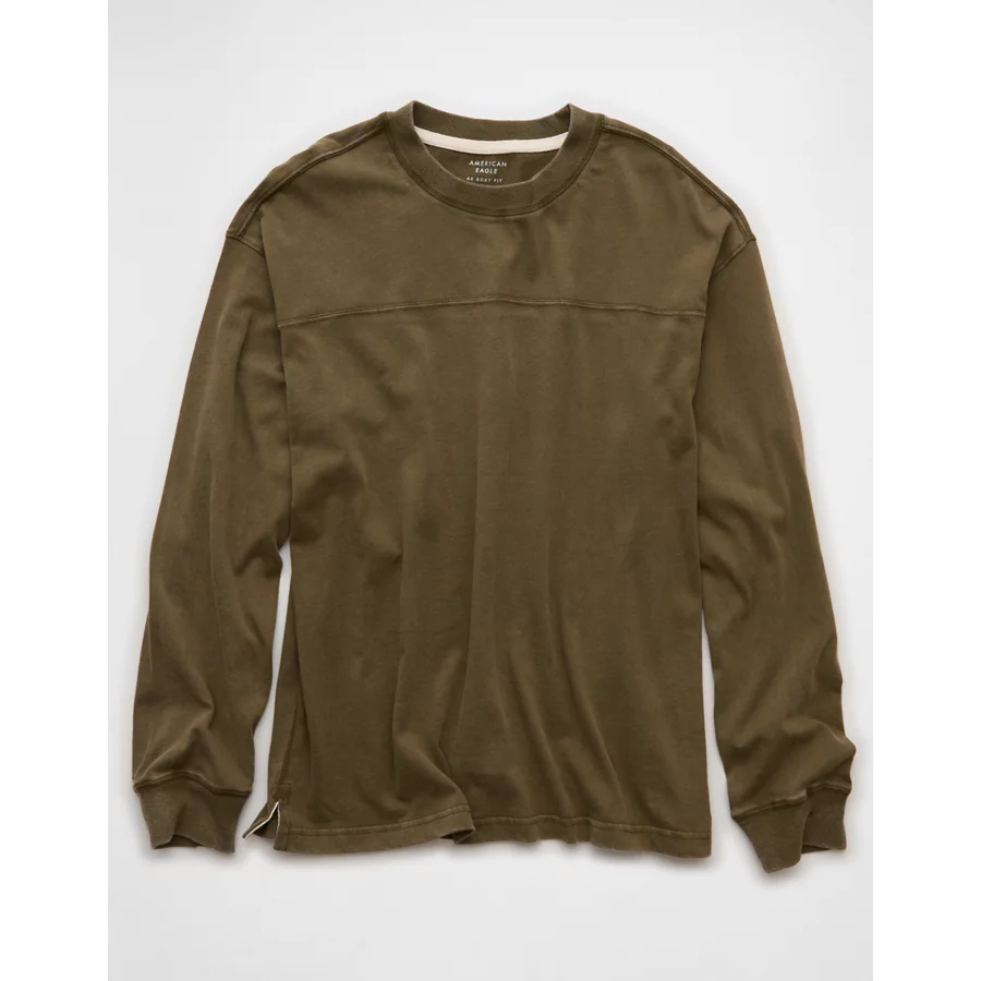 AE Long-Sleeve Boxy Sueded Jersey T-Shirt – Bunker Olive