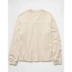 AE Long-Sleeve Boxy Sueded Jersey T-Shirt – Cream