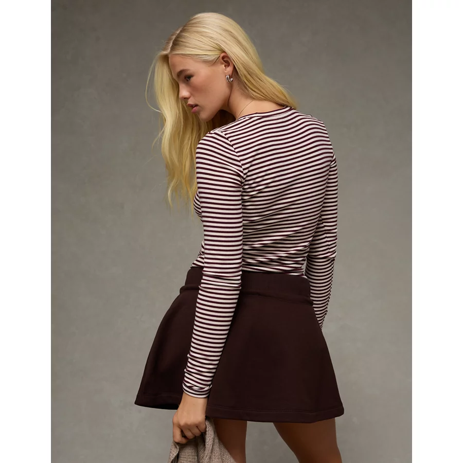AE Long Sleeve Cozy Crew Neck T-Shirt – Burgundy