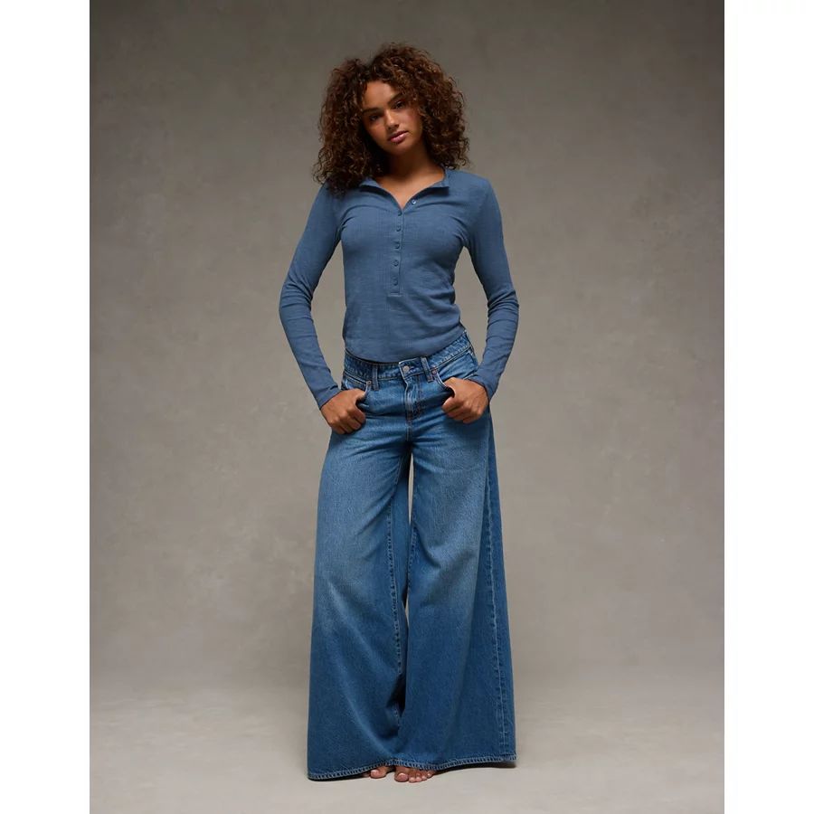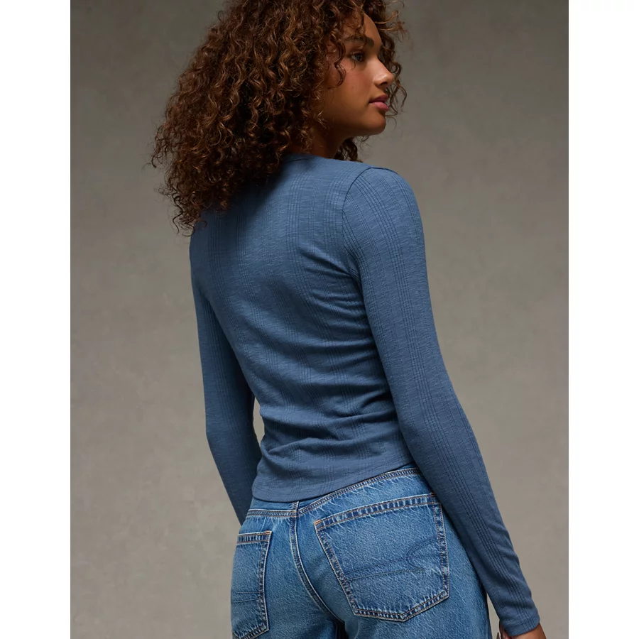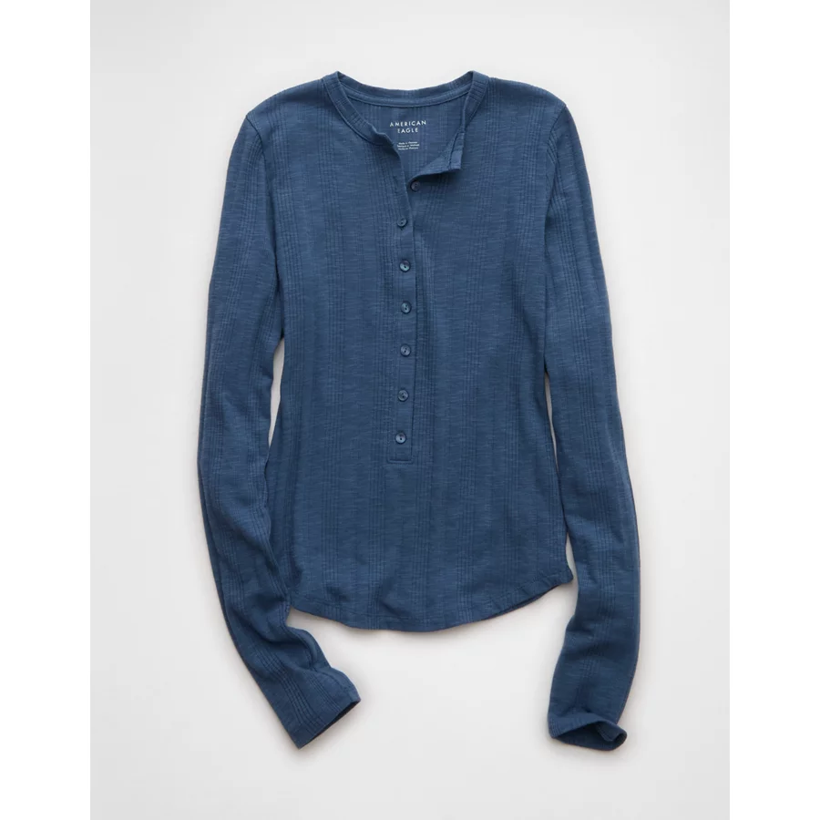 AE Long Sleeve Henley T-Shirt – Navy