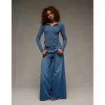 ABO Snoopy Skier Print Plush PJ Top – Blue