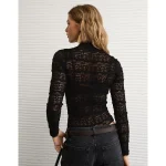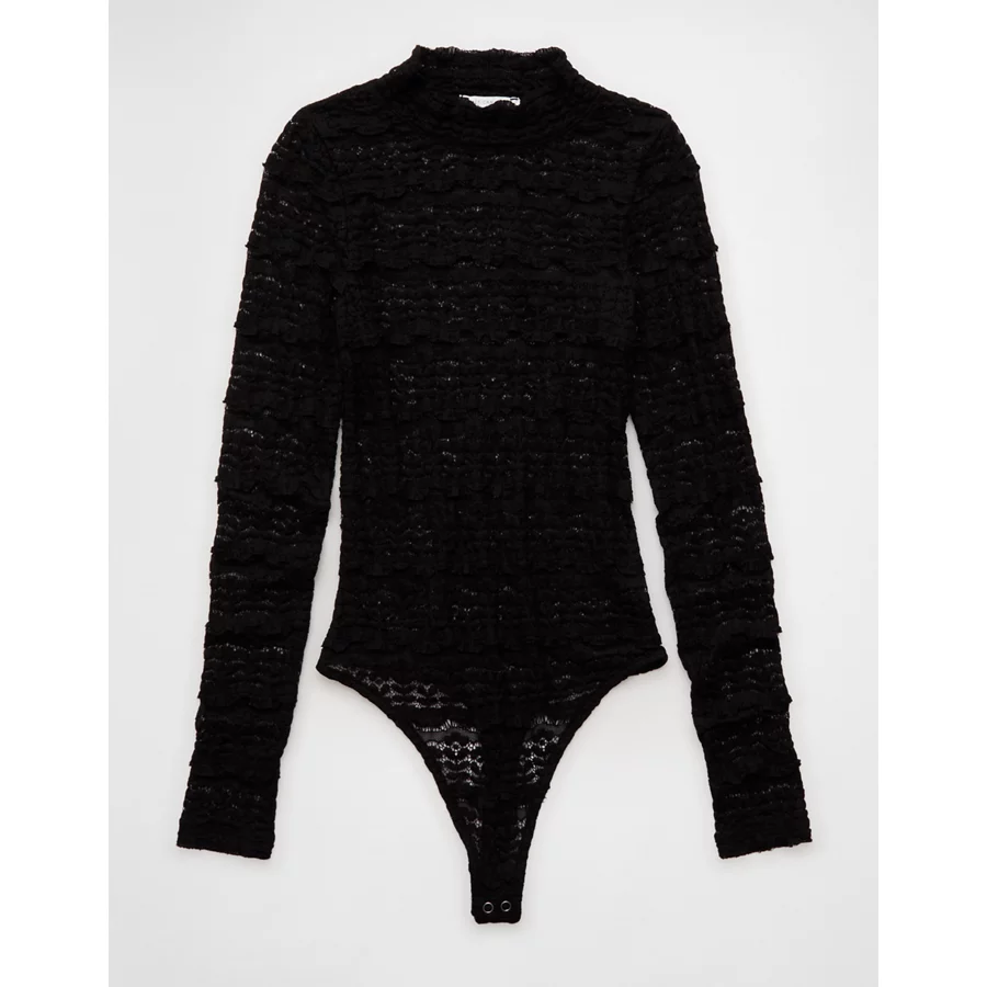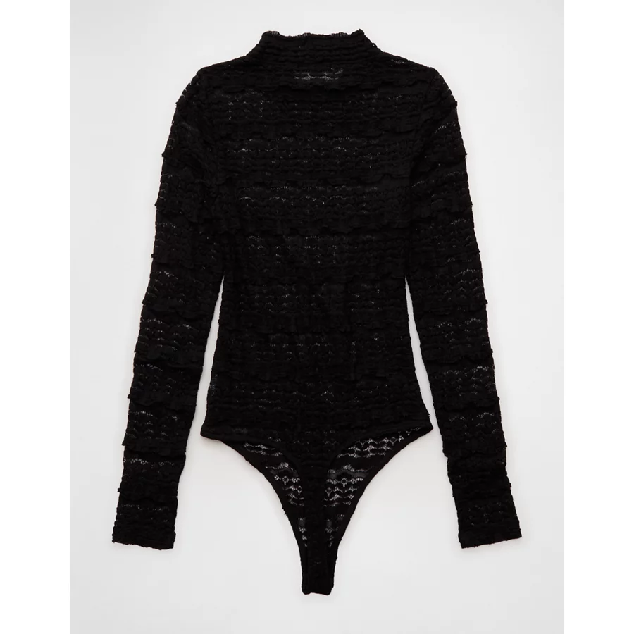 AE Long Sleeve Mock Neck Lace Bodysuit – True Black