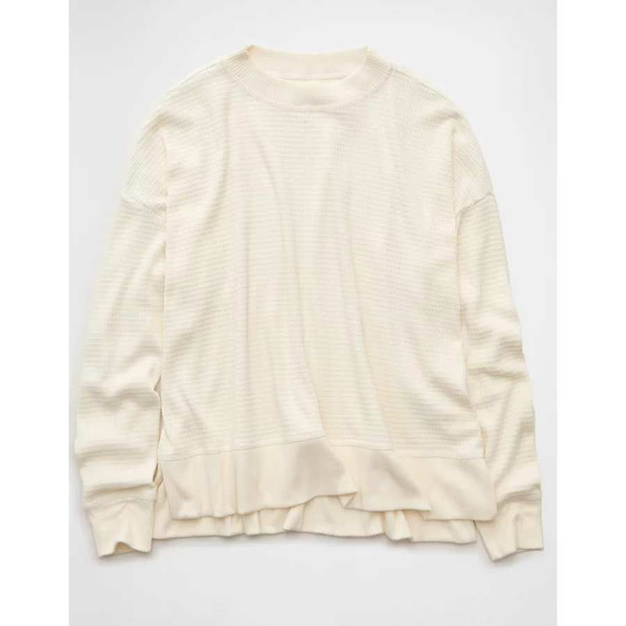 AE Long Sleeve Plush Crew Neck Top – Chalk