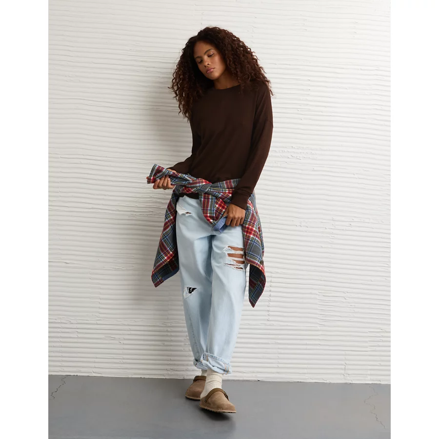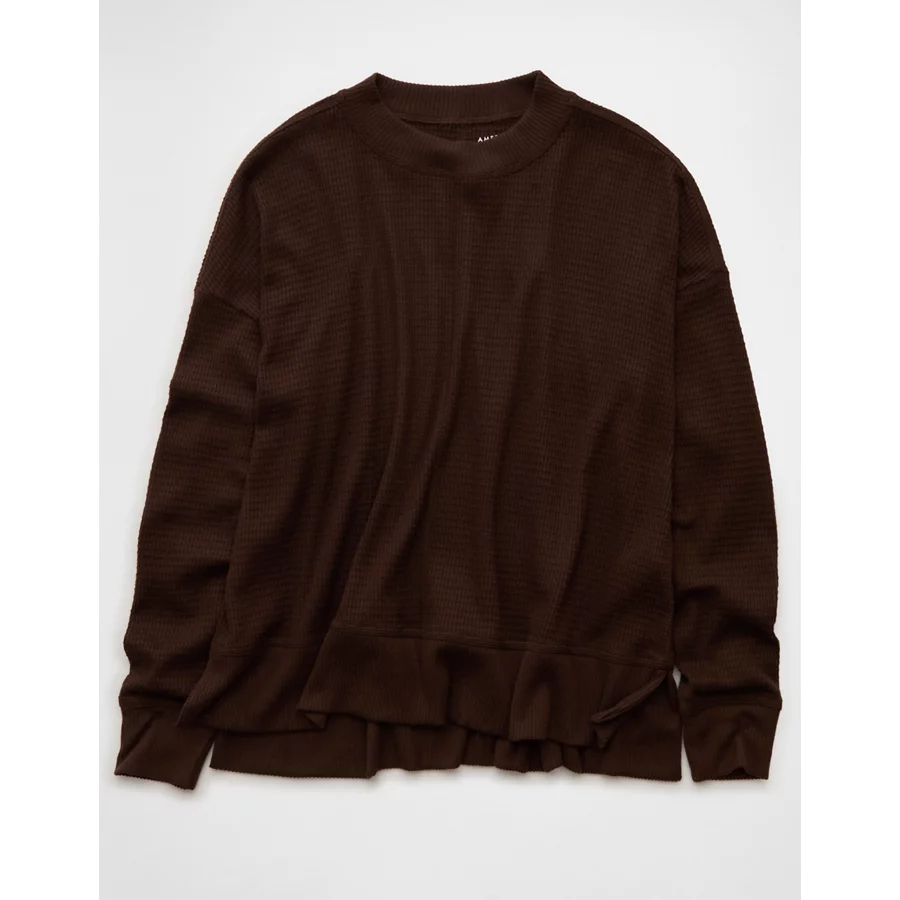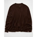 AE Long Sleeve Plush Crew Neck Top – Chocolate