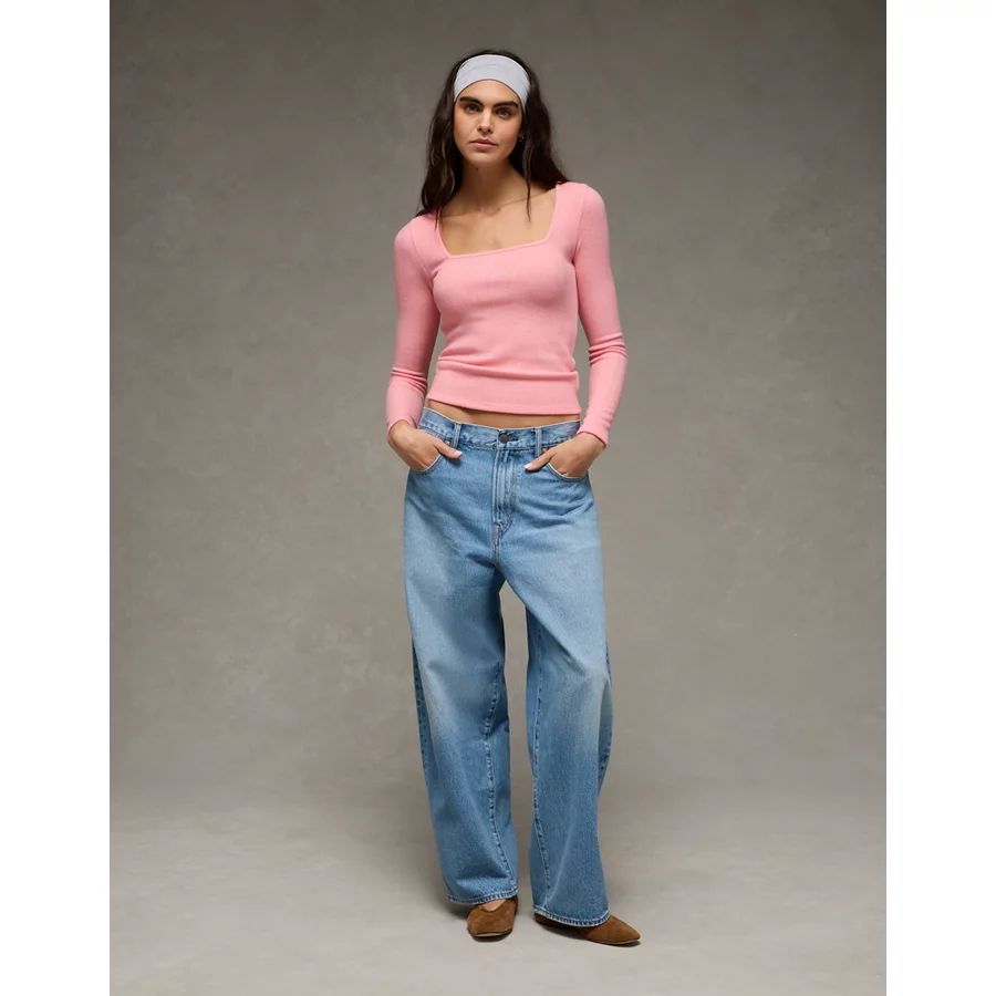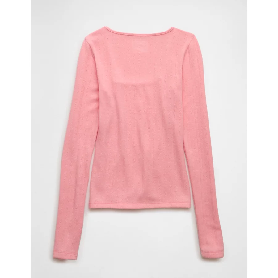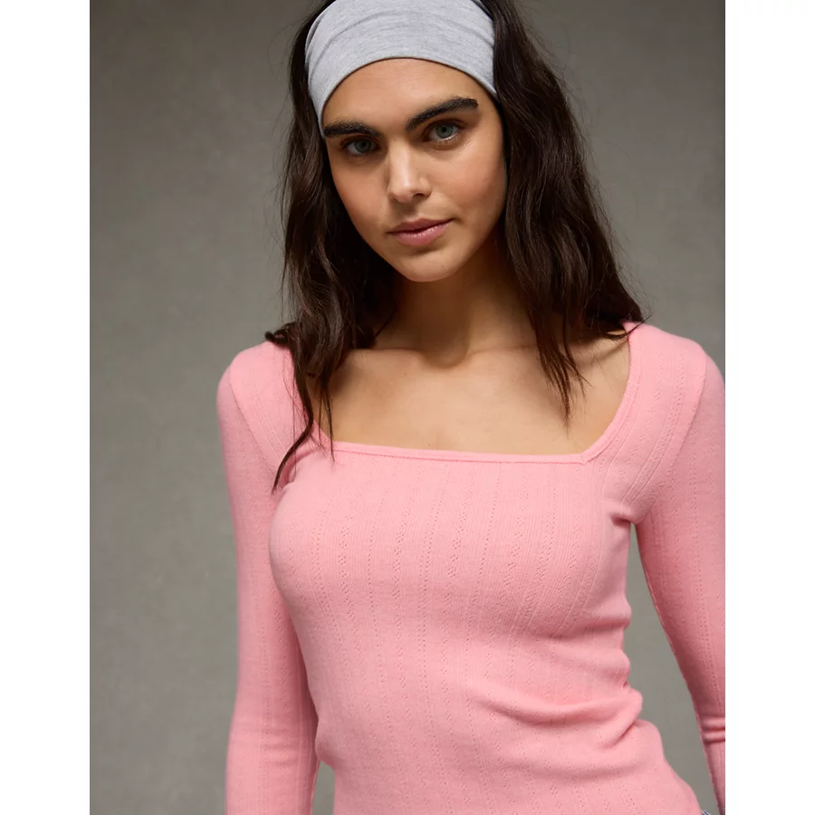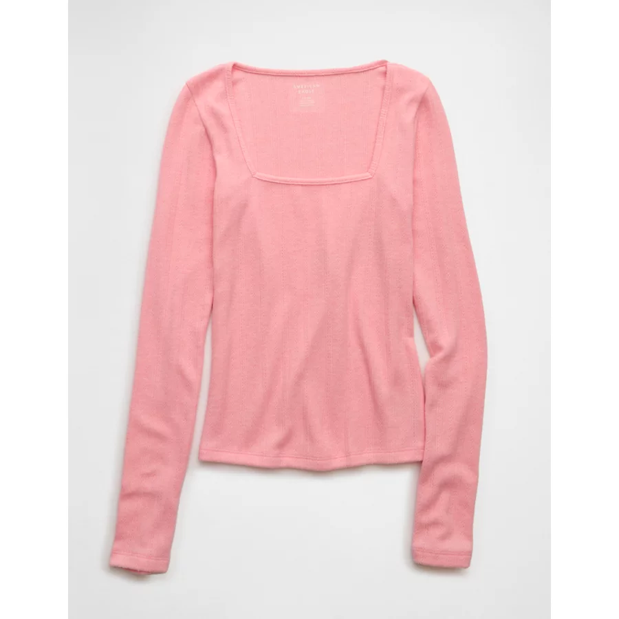 AE Long Sleeve Square Neck T-Shirt – Pink Note