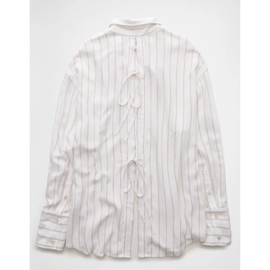 AE Long-Sleeve Tie Back Button-Up Shirt – Beige