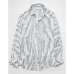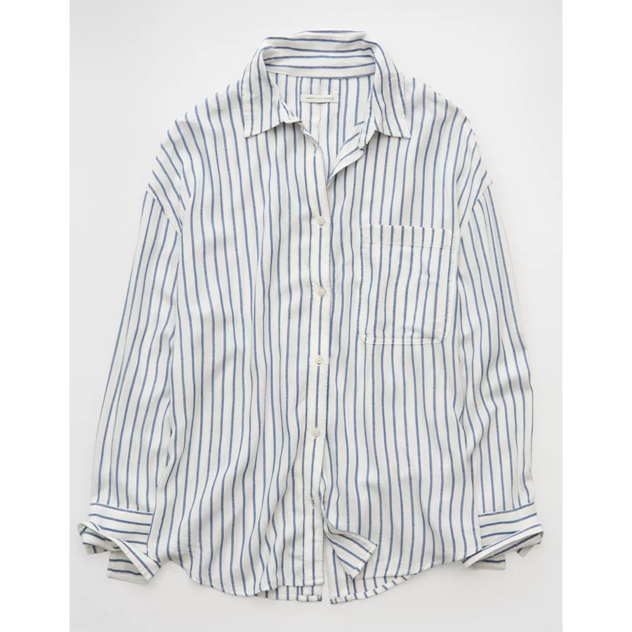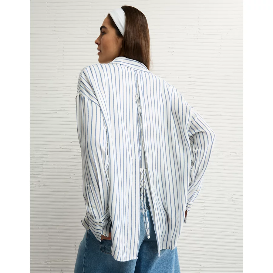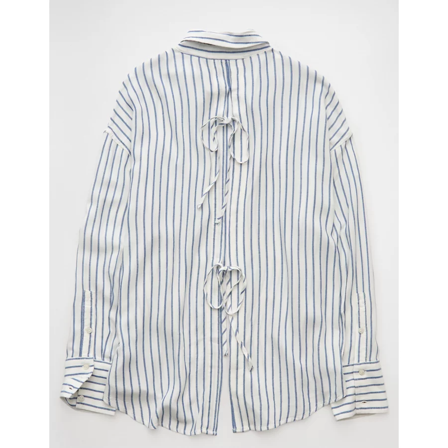 AE Long-Sleeve Tie Back Button-Up Shirt – Blue